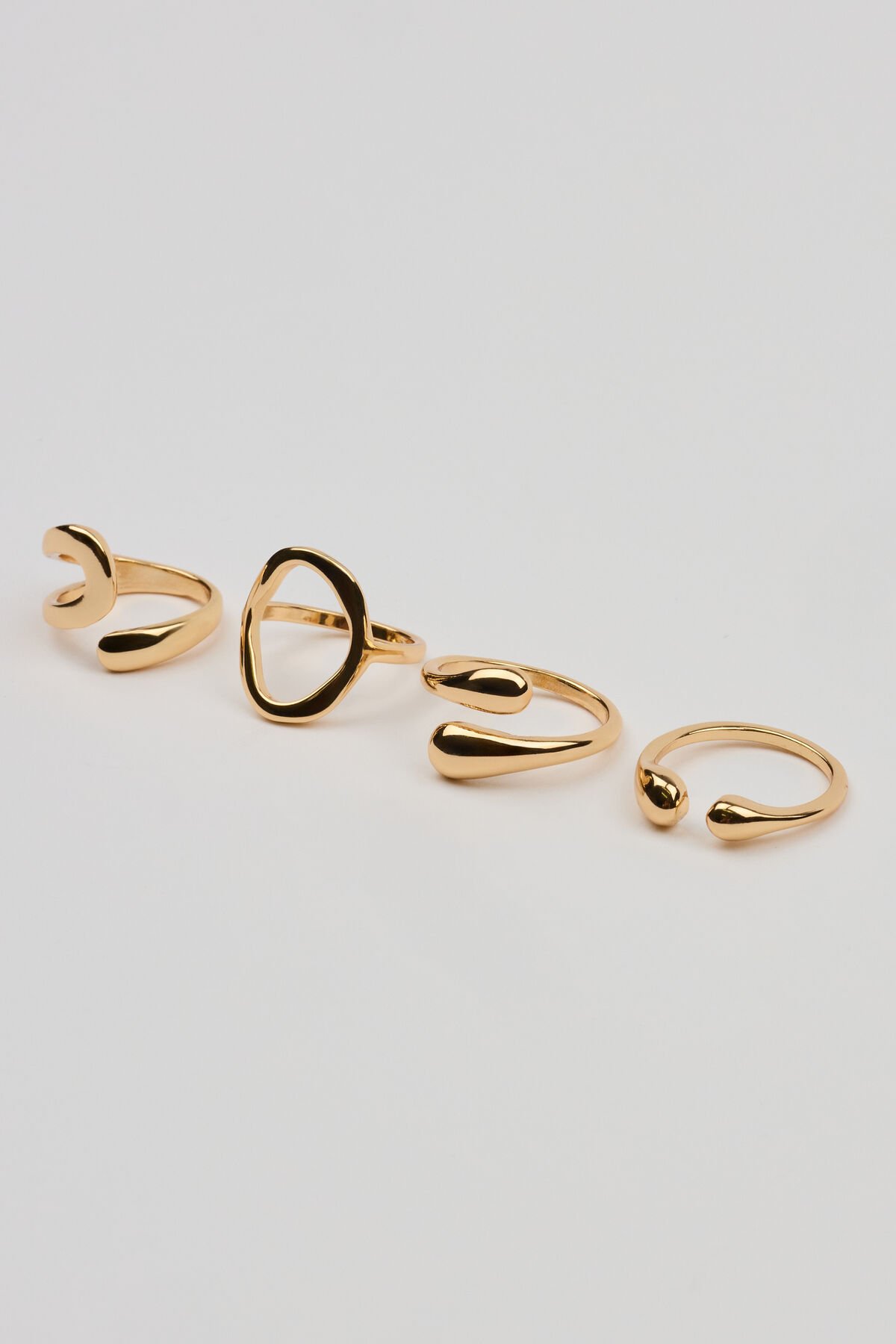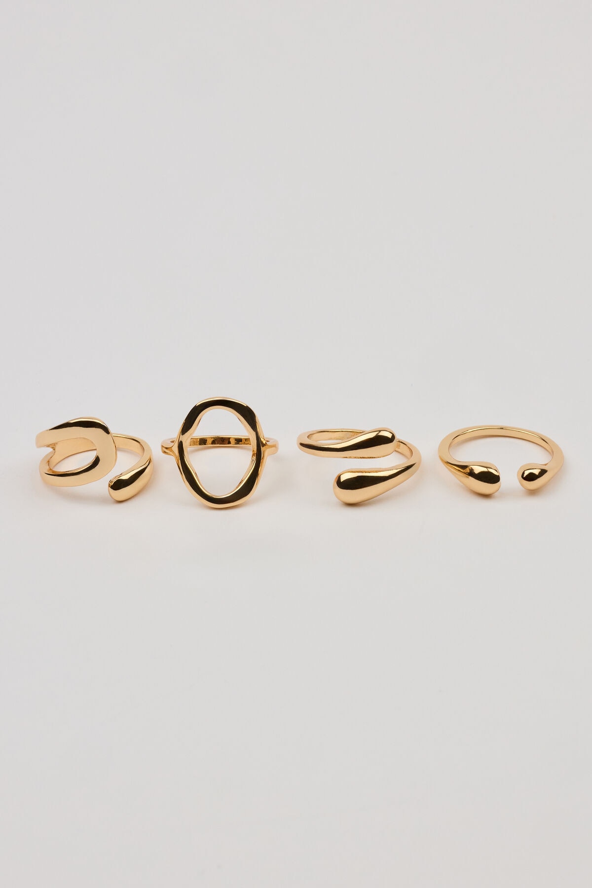 Set of 4 Open Shaped Rings Yellow women – Ring me. Features Set of 4 rings Stackable Metal costume jewelry All jewelry is lead, nickel, and cadmium free Imported
